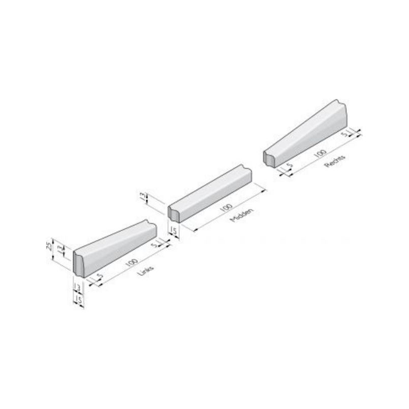 Hoekstuk 10x20 cm gazonband 90 gr. uitw. Grijs VB
